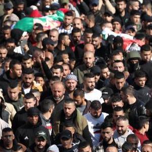 1月26日,人們在約旦河西岸城市杰寧參加被以色列軍隊打死的巴勒斯坦人的葬禮。
