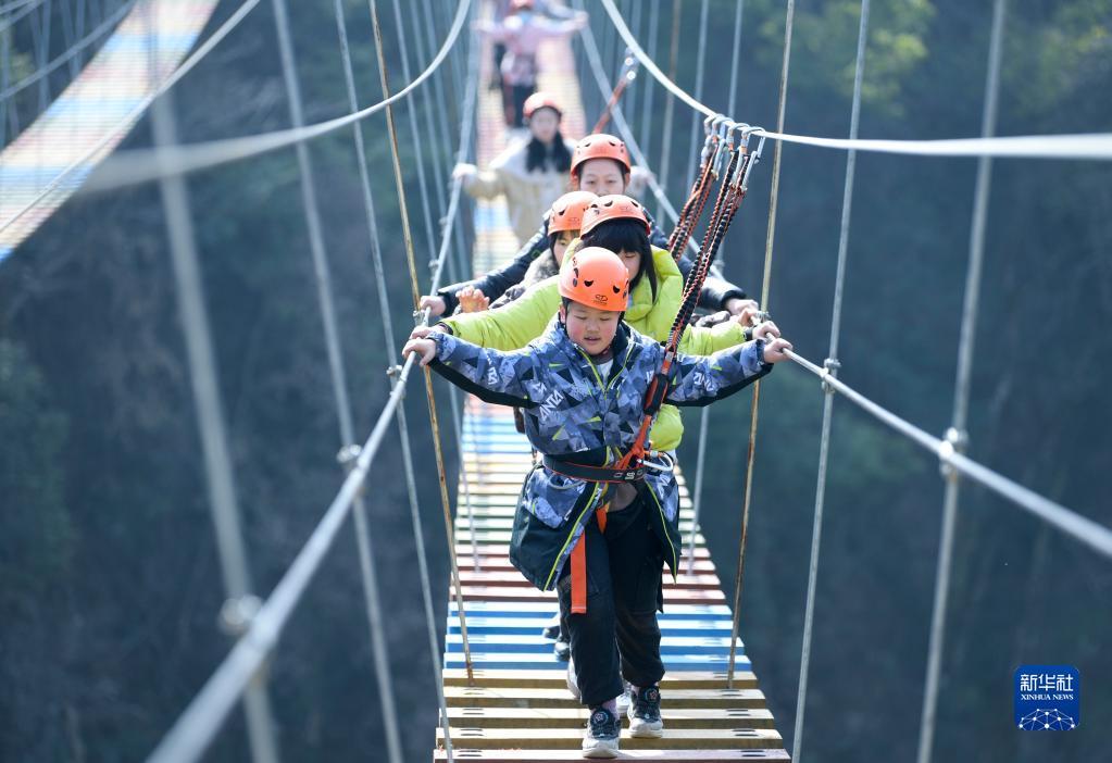 春節假期,人們前往地處鄂西山區的宣恩縣鑼圈巖地質(zhì)公園,體驗天坑上空行走、深入洞穴探險等,學(xué)習地質(zhì)知識,挑戰自我,樂(lè )享戶(hù)外休閑的樂(lè )趣。