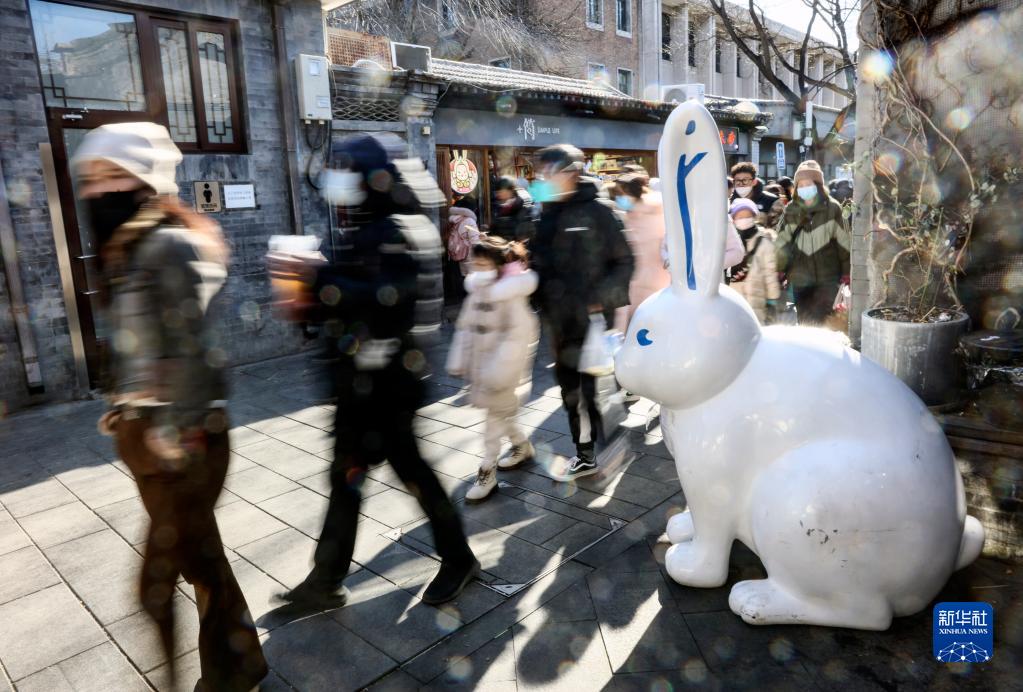 1月27日,游客在北京南鑼鼓巷游覽。
