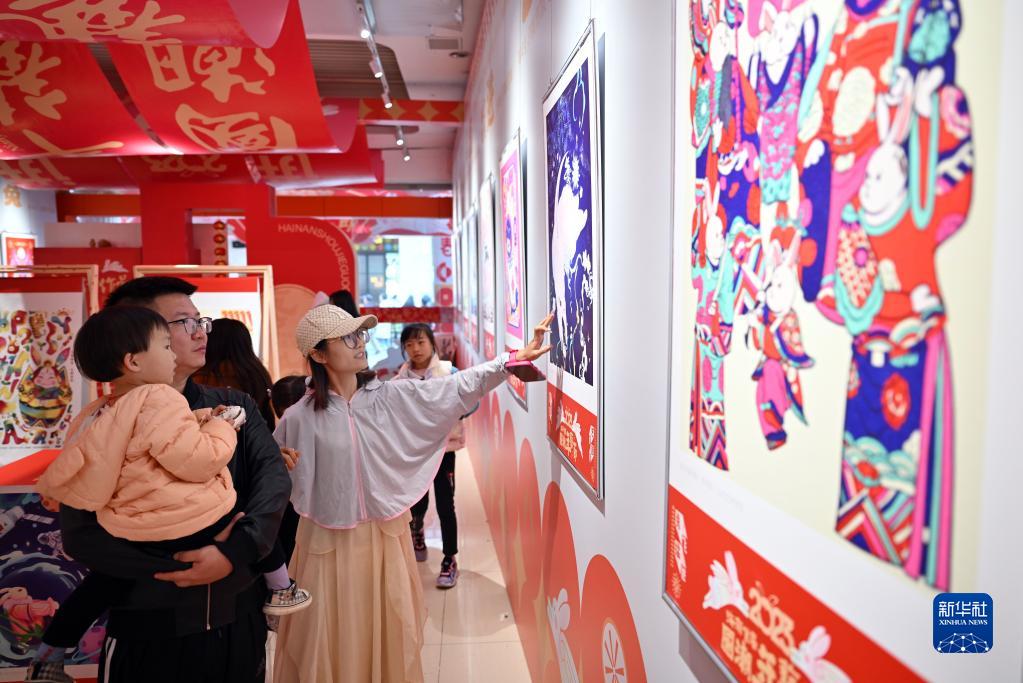 1月27日,游客在??隍T樓老街觀(guān)看國潮年藝展。