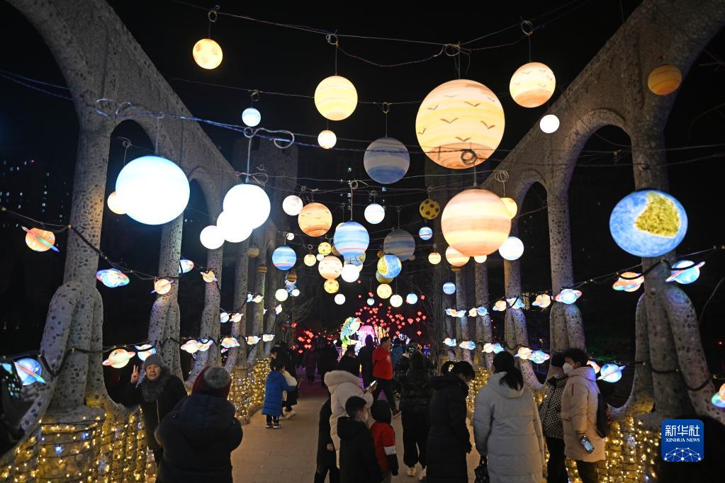 春節期間,天津中華石園景區舉辦的新春民俗燈會(huì )吸引了眾多游客。夜幕降臨后,融合兔子、二十四節氣等元素的各式彩燈結合現代光影變得惟妙惟肖、活靈活現。市民及游客在此賞燈游玩、“打卡”拍照,感受節日氛圍。