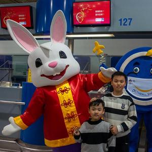 中國農歷兔年春節期間,希臘雅典國際機場(chǎng)推出兔子吉祥物,為乘客送上吉祥與歡樂(lè )。