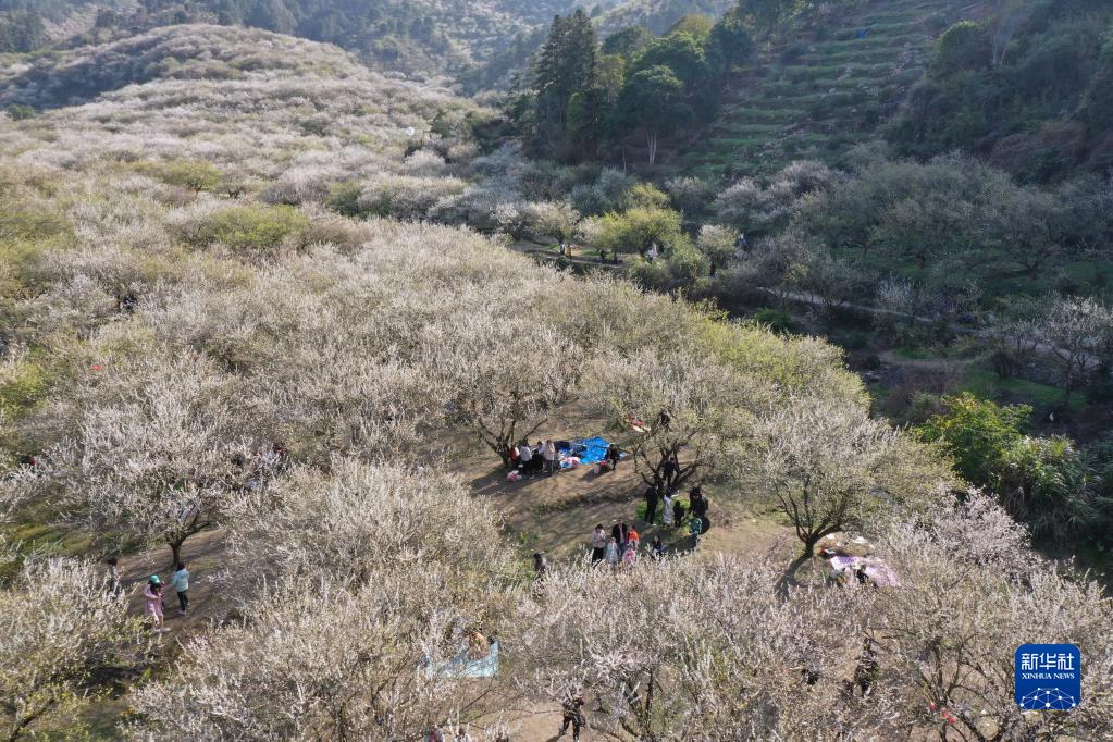 1月27日,福州市永泰縣葛嶺鎮大坑里青梅盛開(kāi)(無(wú)人機照片)。