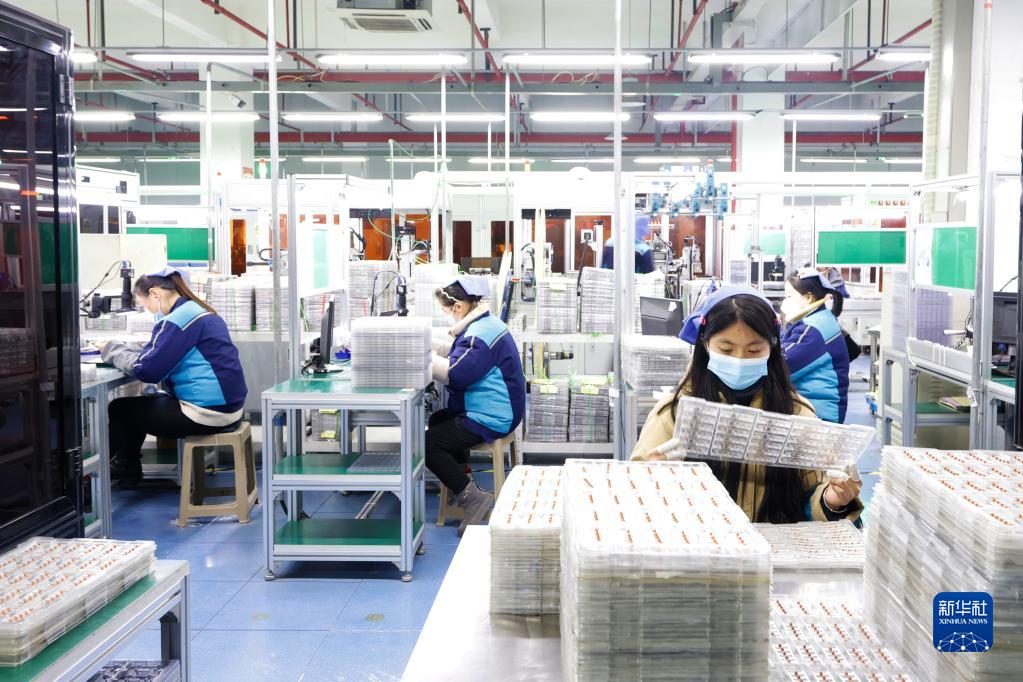 1月27日,在江蘇泗洪經(jīng)濟開(kāi)發(fā)區,一家電子元器件企業(yè)的工人在車(chē)間忙碌。