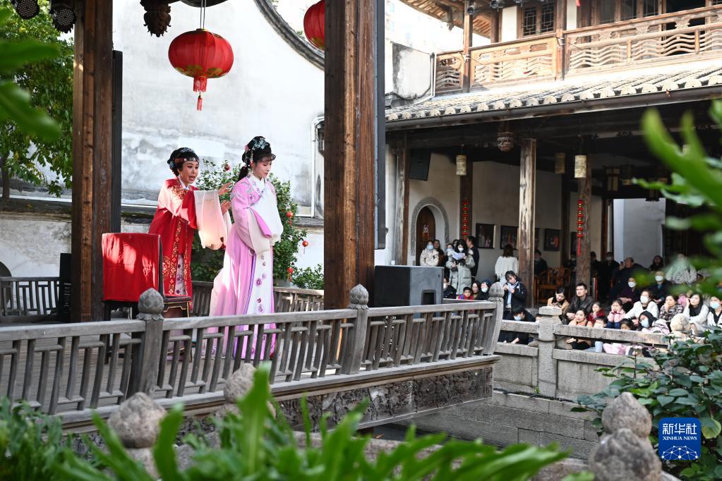 1月27日,游客在福州三坊七巷水榭戲臺觀(guān)看越劇。