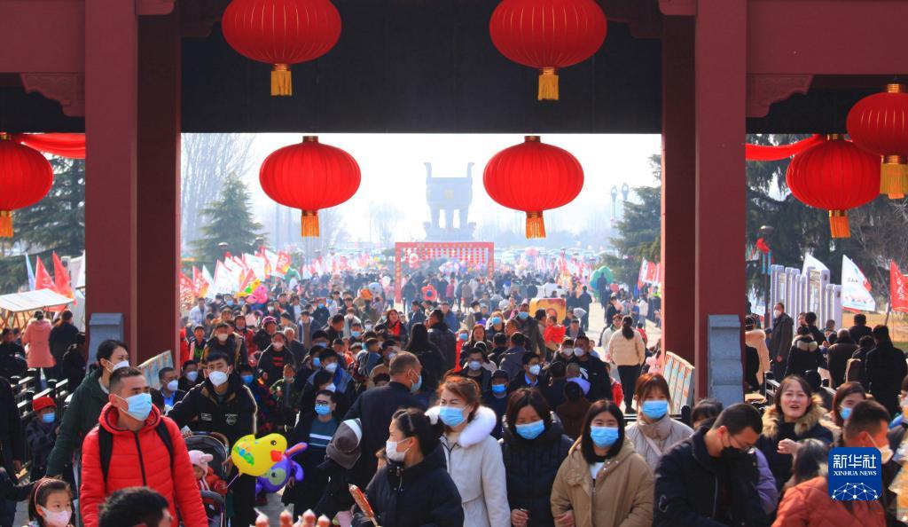1月22日,游人在山東省臨沂市沂蒙山龜蒙景區新春廟會(huì )上游玩。