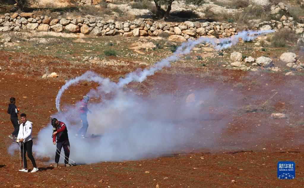 1月27日,在約旦河西岸城市納布盧斯東部村莊拜特代堅,巴勒斯坦抗議者與以色列士兵發(fā)生沖突。