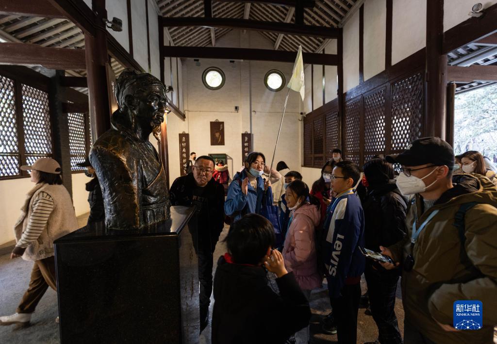 1月28日,游客在四川成都杜甫草堂游覽。