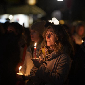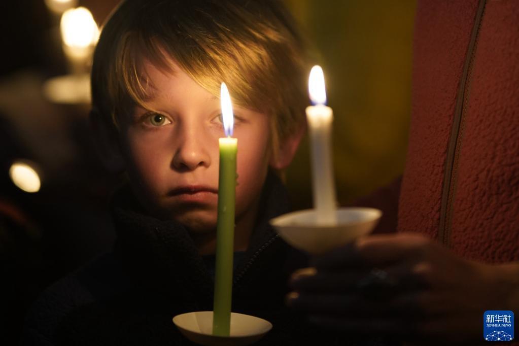 1月27日,一個(gè)男孩在美國加利福尼亞州半月灣市舉行的守夜活動(dòng)中哀悼槍擊事件遇難者。