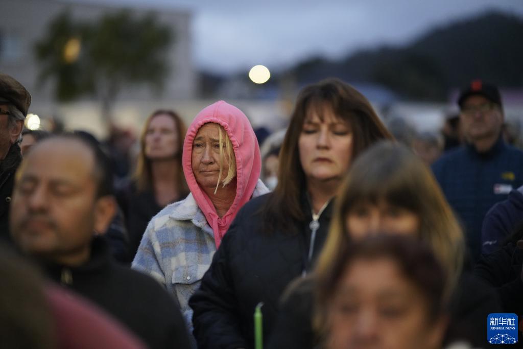 1月27日,人們在美國加利福尼亞州半月灣市舉行的守夜活動(dòng)中哀悼槍擊事件遇難者。