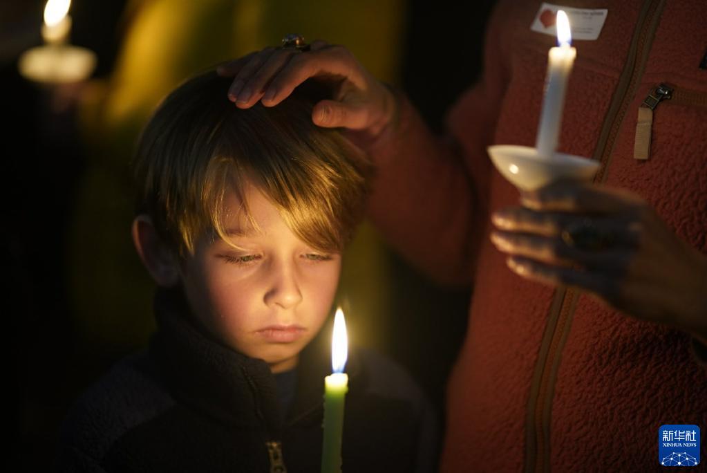 1月27日,一個(gè)男孩在美國加利福尼亞州半月灣市舉行的守夜活動(dòng)中哀悼槍擊事件遇難者。