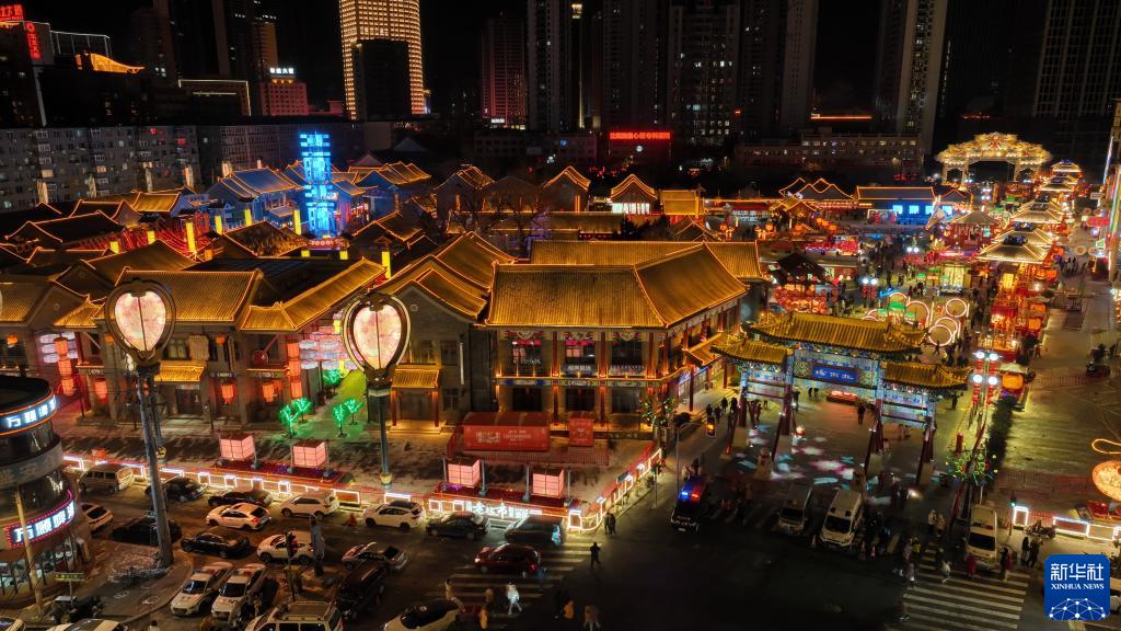 1月23日,市民在沈陽(yáng)新春皇寺廟會(huì )游玩(無(wú)人機照片)。
