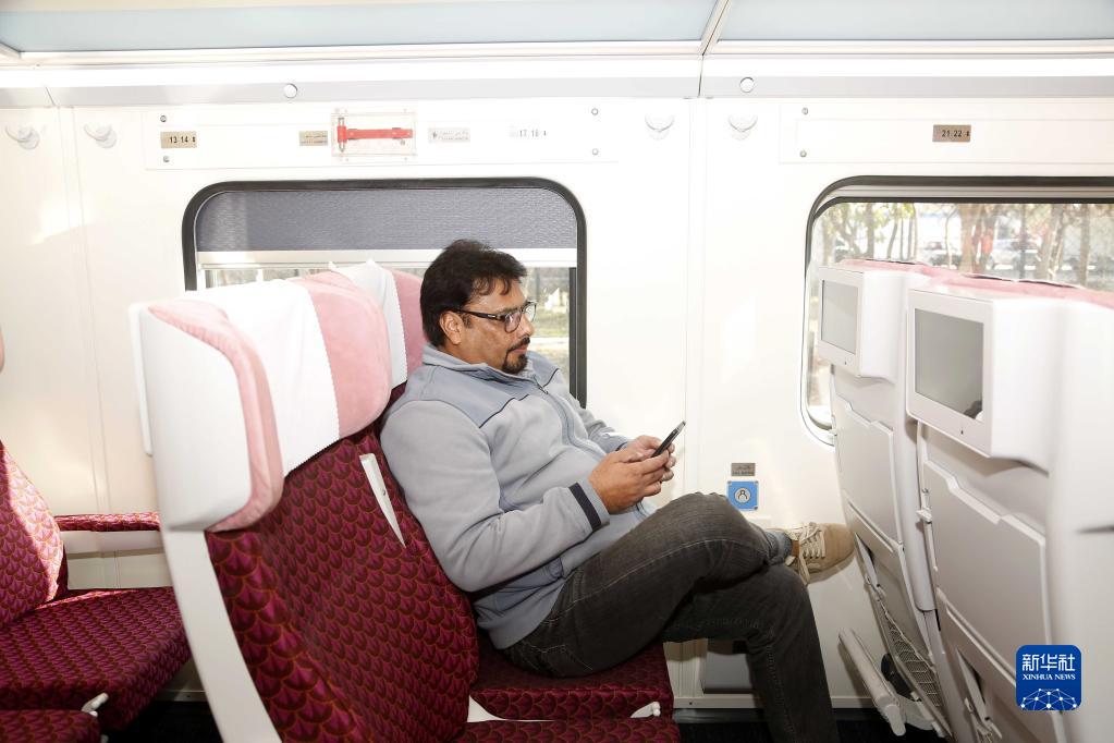 1月27日,在巴基斯坦伊斯蘭堡,乘客坐在綠線(xiàn)特快列車(chē)組的中國進(jìn)口鐵路客車(chē)內。