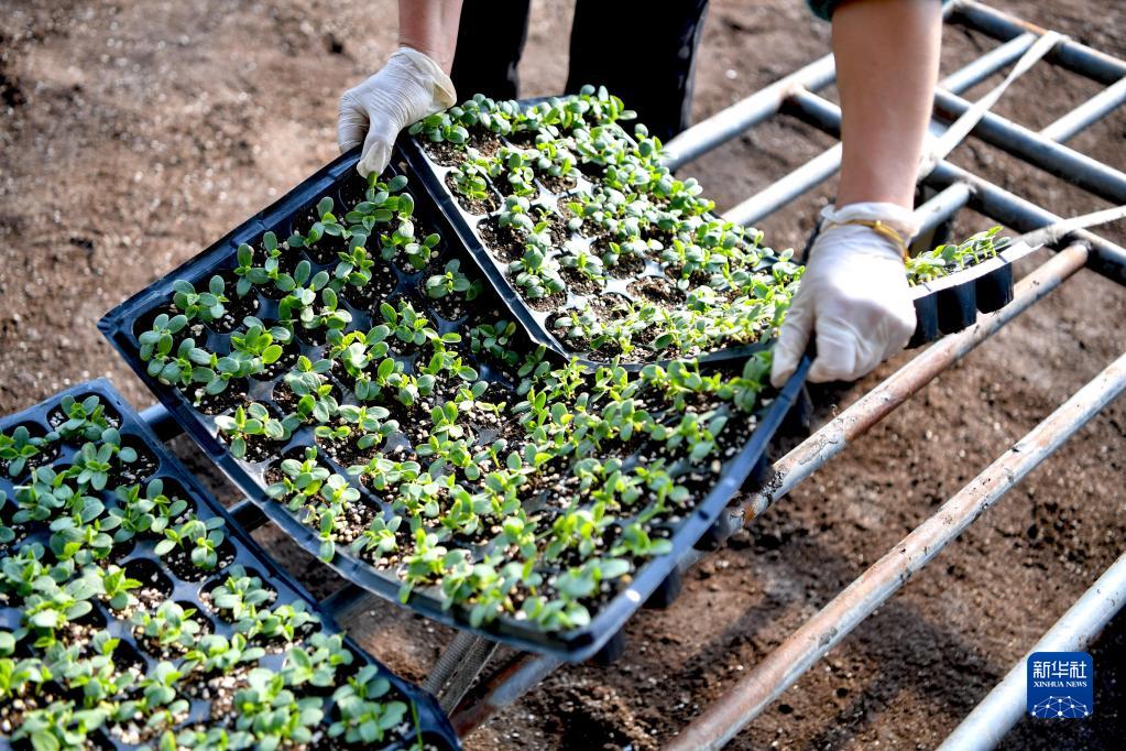 1月28日,在安徽省亳州市譙城區趙橋鄉趙橋村森盛農民種植專(zhuān)業(yè)合作社,農民整理甜瓜苗。