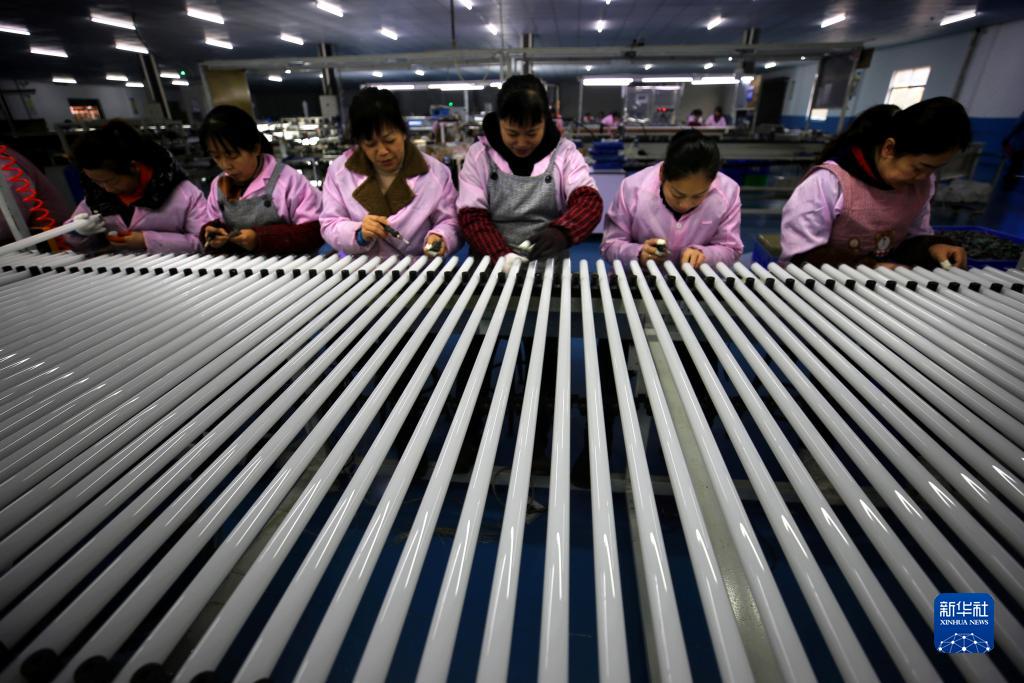 1月28日,江西省宜春市靖安縣工業(yè)園區一家綠色照明企業(yè)員工在出口LED燈生產(chǎn)線(xiàn)上忙碌。