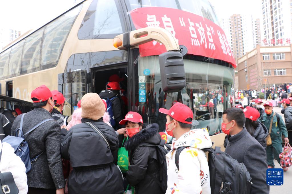 云南省彝良縣組織務(wù)工人員乘坐“務(wù)工專(zhuān)車(chē)”返崗復工(1月27日攝)。