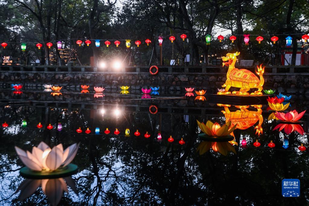 1月29日,在嘉興市秀洲區新塍古鎮小蓬萊公園內,“鰲山燈會(huì )”的彩燈正式點(diǎn)亮。