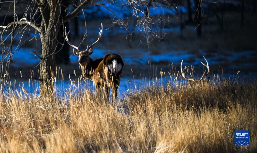 1月29日,一只馬鹿在灤河源國家森林公園內覓食。新華社記者 連振 攝
