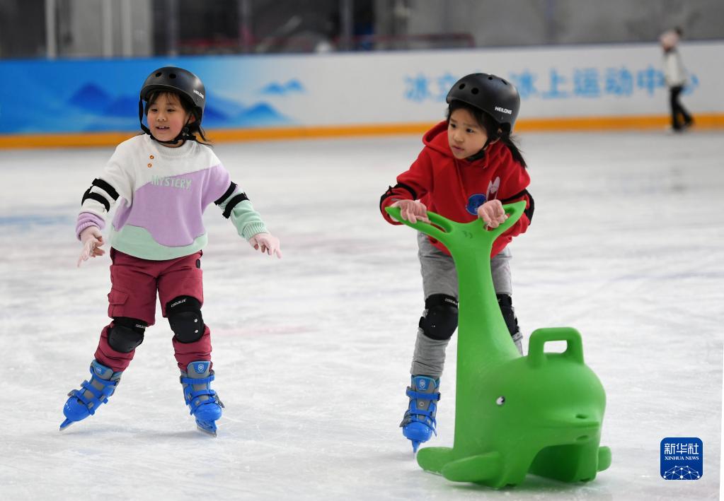 1月29日,小朋友們在“冰立方”冰上運動(dòng)中心滑冰。