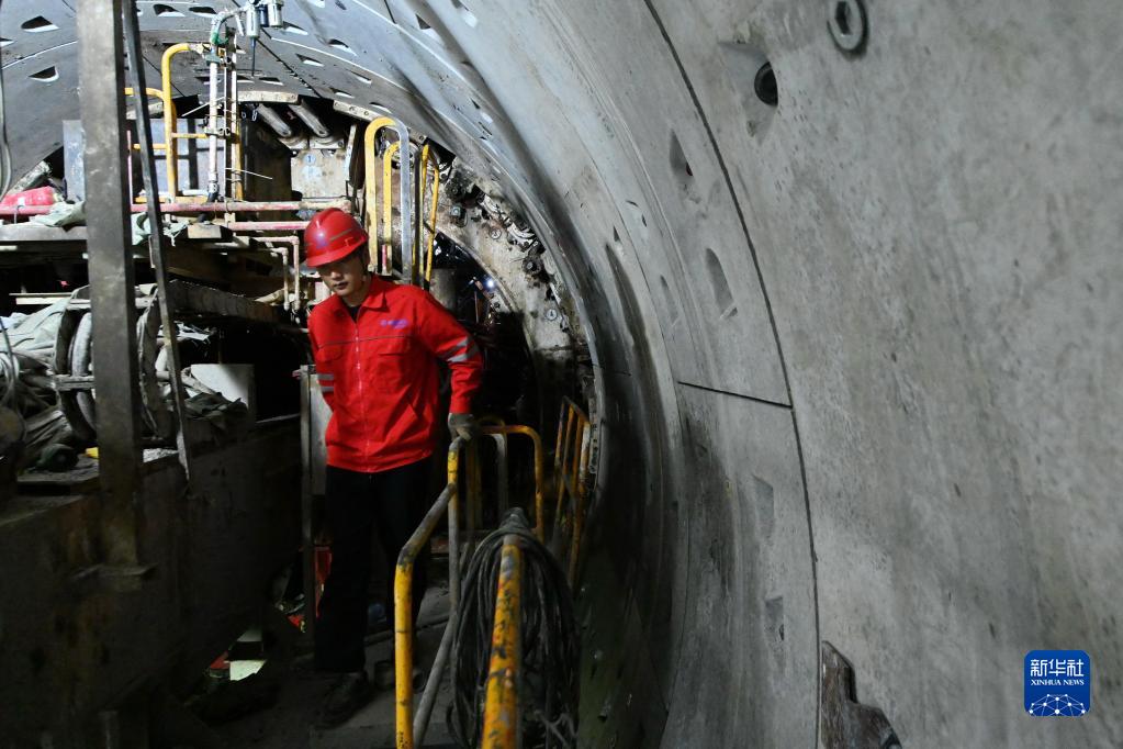1月29日,施工人員在福州地鐵4號線(xiàn)金牛山站至洪塘站區間的下穿閩江底隧道內施工作業(yè)。