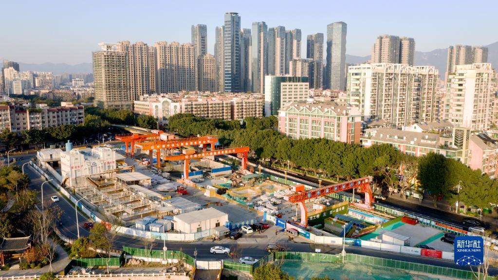 這是1月29日拍攝的福州地鐵濱??炀€(xiàn)南公園站地面施工區域(無(wú)人機照片)。
