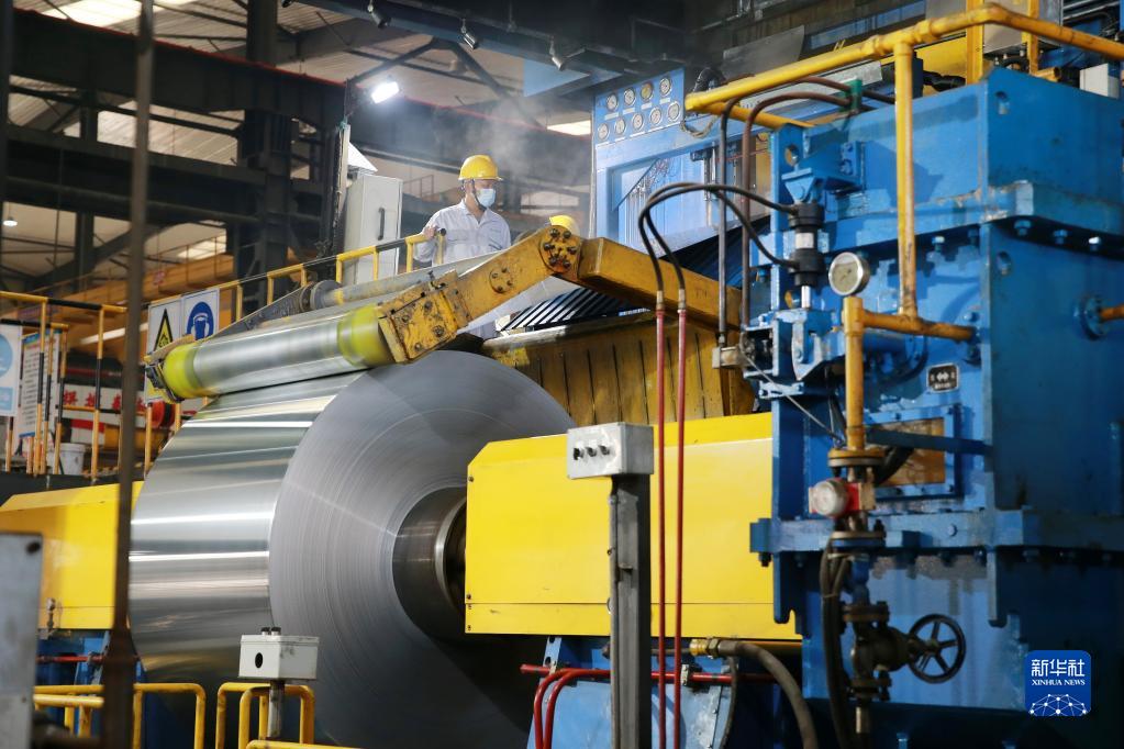 1月30日,在安徽省淮北市濉溪經(jīng)濟開(kāi)發(fā)區一家鋁板帶箔加工企業(yè),工人在生產(chǎn)車(chē)間忙碌。