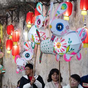 兔年新春,在安徽省黃山市黟縣宏村,當地舉行的花燈研習班邀請游客共同制作兔子形狀花燈。傍晚時(shí)分,五顏六色的“兔燈”在古村中點(diǎn)亮,游客在“鬧花燈”中體驗徽州年俗。