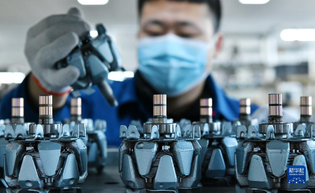 1月30日,工人在河間市一家再制造企業(yè)車(chē)間生產(chǎn)線(xiàn)上工作。