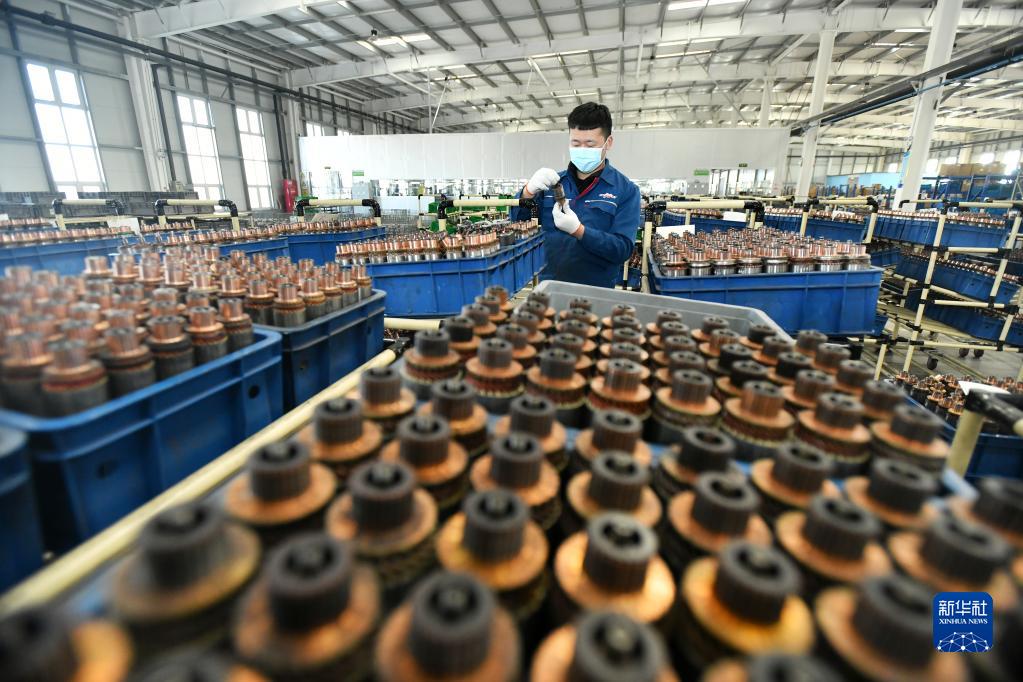 1月30日,工人在河間市一家再制造企業(yè)半成品庫檢查產(chǎn)品質(zhì)量。