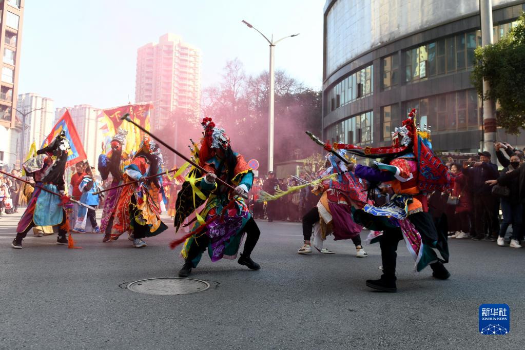 當日是正月初九,貴州省黔南布依族苗族自治州龍里縣舉辦傳統民俗“踩街”活動(dòng),通過(guò)花燈巡演、花棍舞、蘆笙舞、舞龍舞獅等民俗活動(dòng),歡度新春。