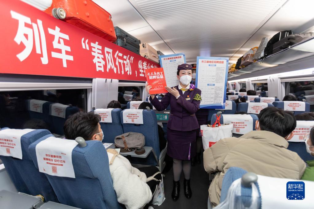 近日,針對長(cháng)三角地區節后務(wù)工流特點(diǎn),鐵路上??瓦\段在阜陽(yáng)開(kāi)往上海的G7445次列車(chē)上開(kāi)展就業(yè)服務(wù)“春風(fēng)行動(dòng)”,為進(jìn)城務(wù)工旅客提供上海、蘇州、杭州等長(cháng)三角地區就業(yè)信息,發(fā)放包括服務(wù)、物流、餐飲、家政、制造業(yè)等多個(gè)行業(yè)的300余個(gè)崗位招聘信息,幫助他們提前了解用工信息,促成企業(yè)和務(wù)工人員“雙向奔赴”。