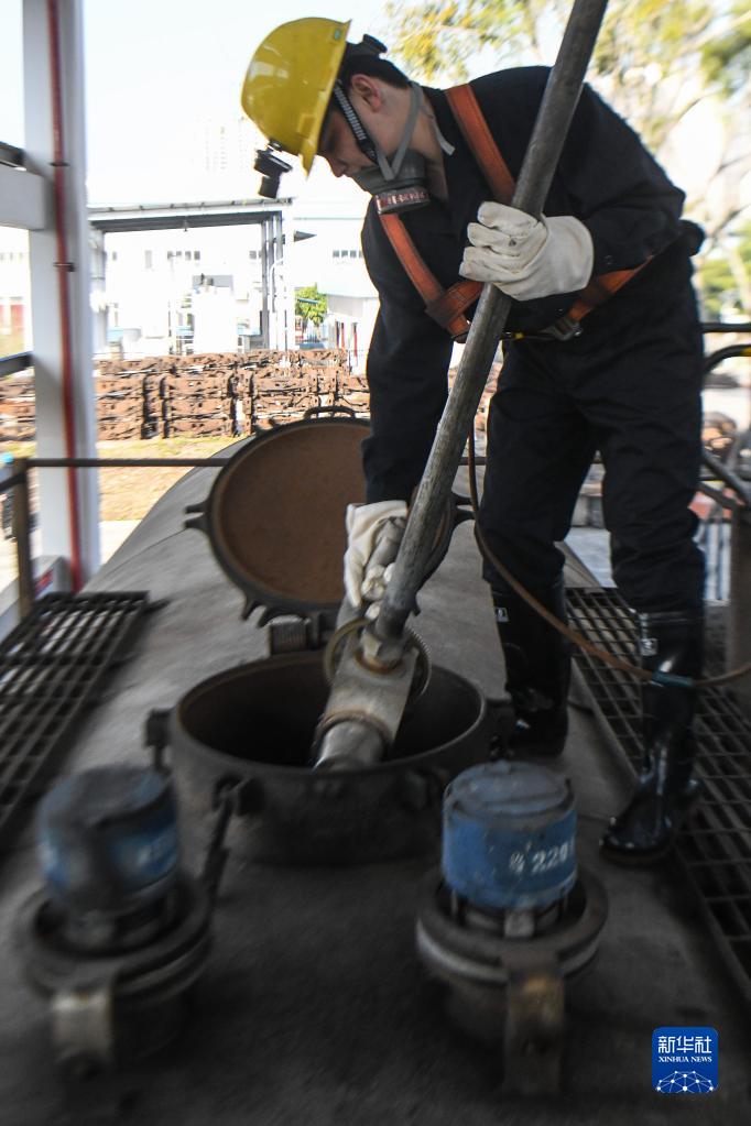 春運期間,通過(guò)西部陸海新通道發(fā)往全國各地的食用油、汽油類(lèi)貨物運輸繁忙,油罐車(chē)運力劇增。在中國鐵路南寧局集團有限公司南寧南車(chē)輛段,一批專(zhuān)門(mén)司職油罐車(chē)的洗罐工,在悶、濕、熱的工作環(huán)境下對油罐車(chē)內部進(jìn)行深度清潔,為油品安全保駕護航。