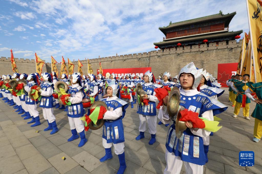 1月31日,在河北省石家莊市正定古城甕城內,正定弘文中學(xué)戰鼓隊進(jìn)行戰鼓表演。