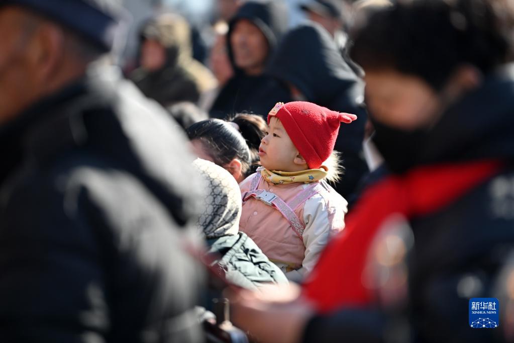 1月30日,在山西省太原市清徐縣孟封村,一名小朋友在觀(guān)看太原市晉劇藝術(shù)研究院實(shí)驗二團演員演出。
