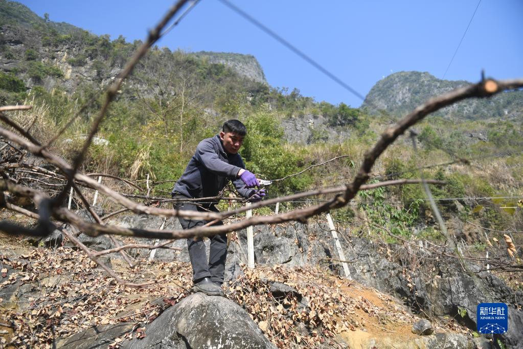 在菁盛鄉東成村過(guò)達屯,黃啟林在給自己種植的葡萄剪枝(1月30日攝)。