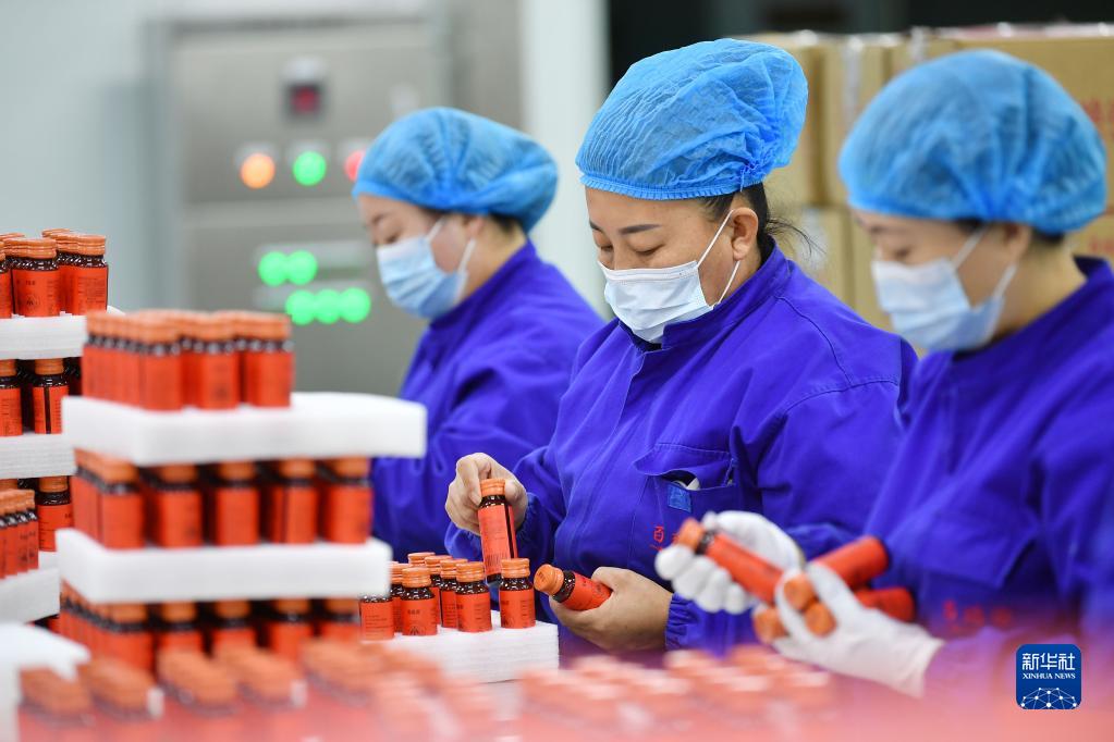 1月31日,在寧夏銀川市賀蘭縣一家枸杞深加工企業(yè),工作人員在生產(chǎn)線(xiàn)上包裝枸杞深加工產(chǎn)品。