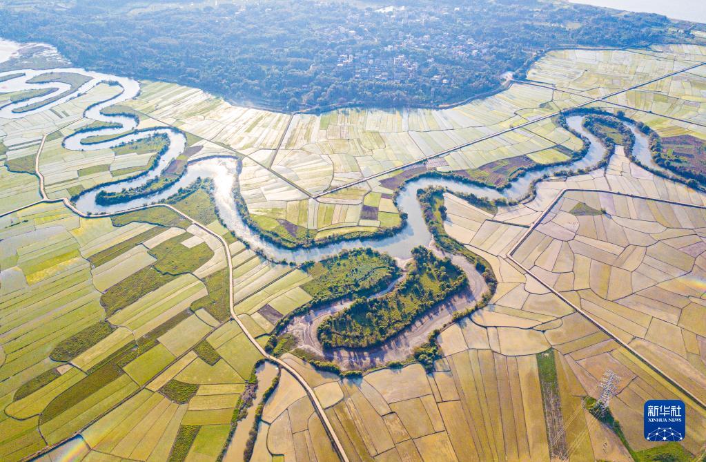 這是1月30日拍攝的??谌〖墲竦毓珗@及周邊的稻田(無(wú)人機照片)。