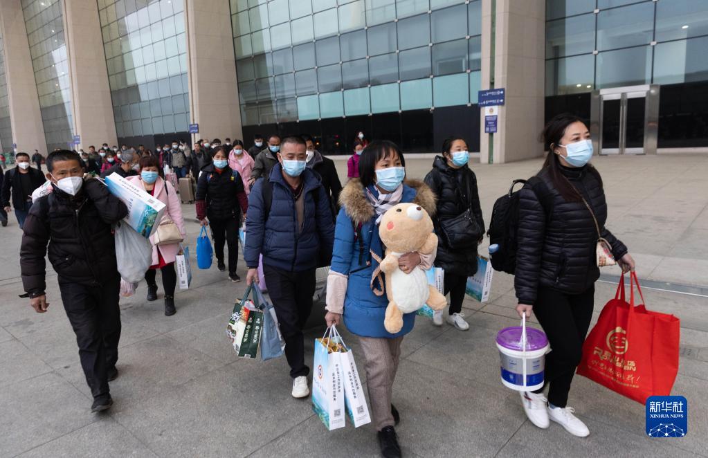 2月1日,來(lái)自四川省遂寧市的務(wù)工人員乘坐務(wù)工大巴直通車(chē)來(lái)到成都東站,準備乘坐高鐵。