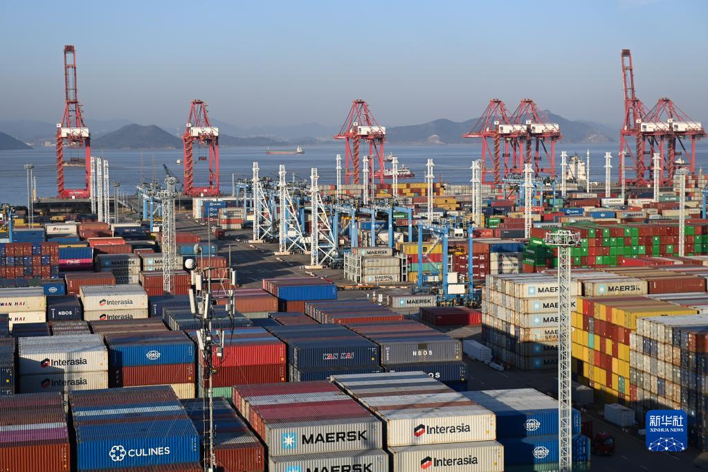 1月31日拍攝的寧波舟山港穿山港區集裝箱碼頭。