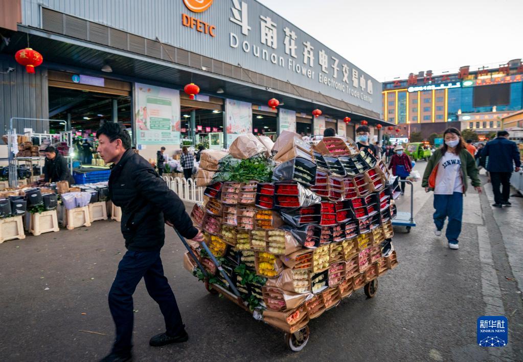 近日,受鮮花節慶消費拉動(dòng)作用等因素影響,位于云南省昆明市的斗南花市鮮花價(jià)格行情全線(xiàn)上漲,迎來(lái)新年“開(kāi)門(mén)紅”。