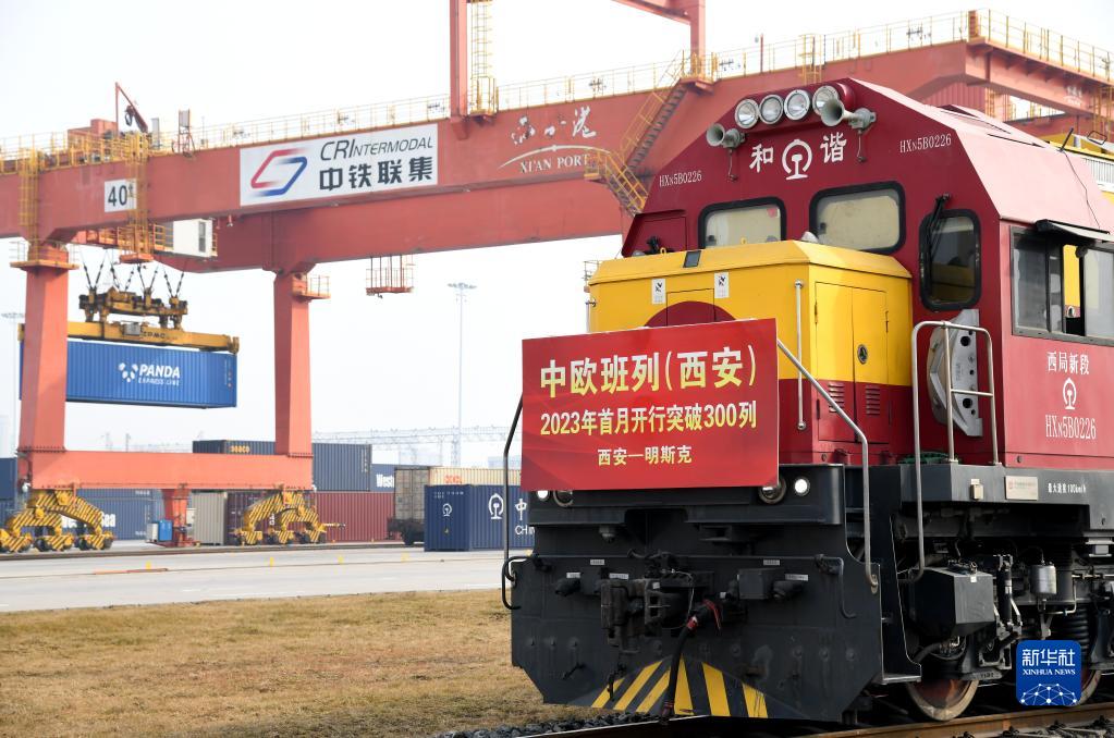當日,滿(mǎn)載日用百貨的X8151次中歐班列從西安國際港站駛出,開(kāi)往白俄羅斯首都明斯克。2023年1月,陜西中歐班列開(kāi)行突破300列,達到346列,創(chuàng )歷史同期最好成績(jì),取得新年開(kāi)門(mén)紅。