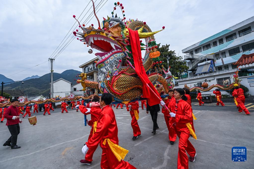 當日是農歷正月十一,在梅花鑼鼓的伴奏下,浙江省杭州市富陽(yáng)區湖源鄉窈口村女子板龍隊舉起由50余張板凳連起來(lái)的百米板龍舞動(dòng)起來(lái),拉開(kāi)了湖源鄉新春系列迎元宵活動(dòng)的序幕。