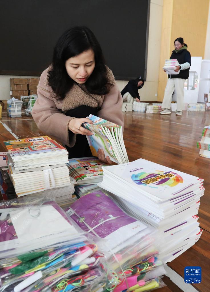 2月1日,江蘇蘇州東中市實(shí)驗小學(xué)校的老師在整理新書(shū)。