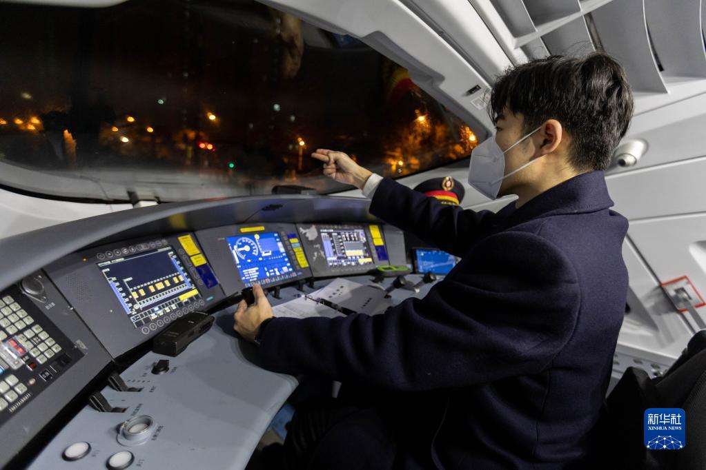 2月1日凌晨4時(shí)許,上海機輛段司機陳逸東駕駛DJ7716次高鐵確認列車(chē)前往檢修路段的起點(diǎn)上海站。