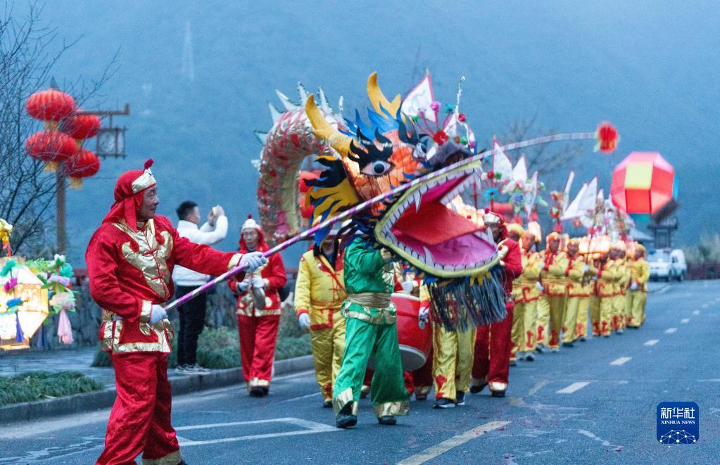 當日,浙江省杭州市淳安縣里商鄉舉行2023元宵節花燈巡游,為當地山鄉增添了熱鬧的元宵氛圍。