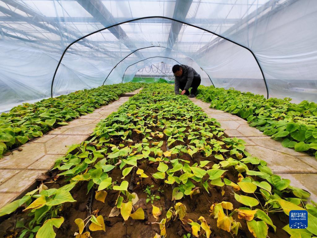 2月2日,技術(shù)人員在進(jìn)行紅薯育苗。