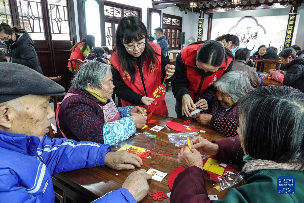 歇馬橋村志愿者輔助村里的老人做元宵節燈籠(2月2日攝)。該村通過(guò)古村落保護與村莊環(huán)境整治工作,建設成為長(cháng)三角鄉村文化傳承創(chuàng )新典型村落。