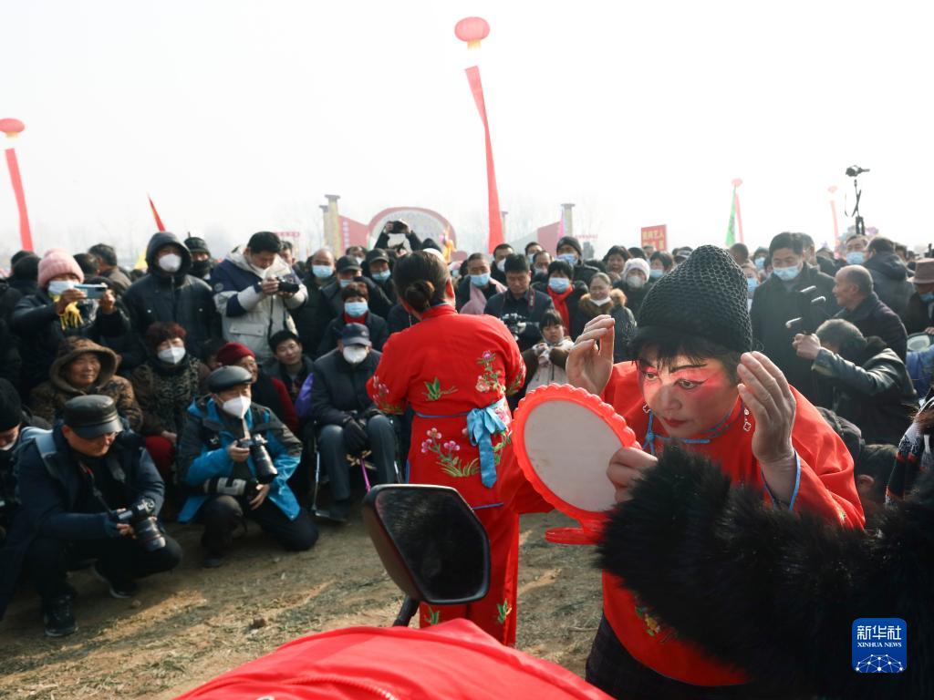 當日是正月十三,時(shí)隔三年,河南省寶豐縣馬街書(shū)會(huì )線(xiàn)下“重啟”。來(lái)自全國各地的說(shuō)書(shū)藝人負鼓攜琴,聚集于此。在麥田中,他們以天作幕,以地為臺,說(shuō)書(shū)會(huì )友,彈唱獻藝。