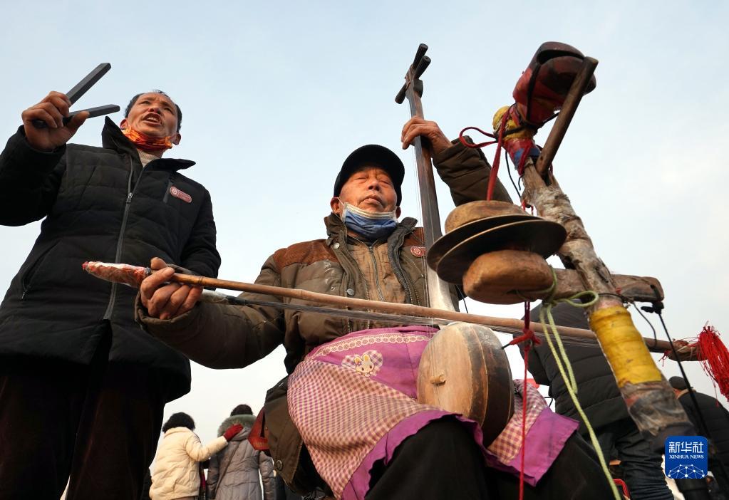 當日是正月十三,時(shí)隔三年,河南省寶豐縣馬街書(shū)會(huì )線(xiàn)下“重啟”。來(lái)自全國各地的說(shuō)書(shū)藝人負鼓攜琴,聚集于此。在麥田中,他們以天作幕,以地為臺,說(shuō)書(shū)會(huì )友,彈唱獻藝。
