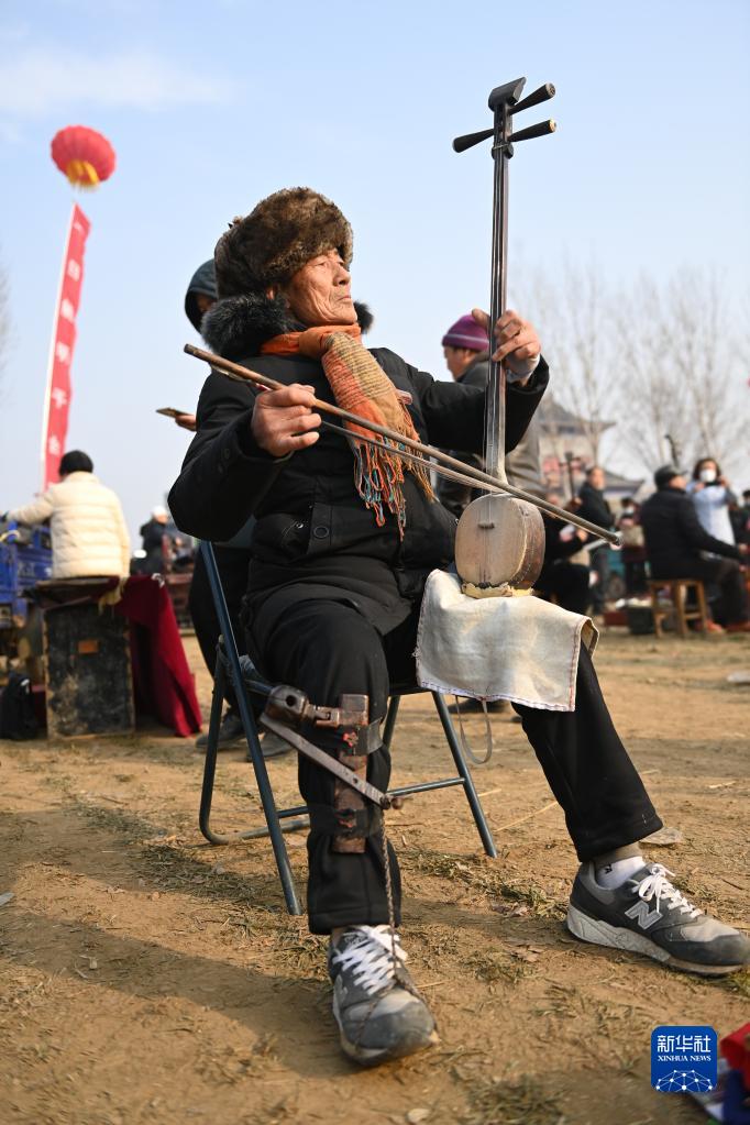 當日是正月十三,時(shí)隔三年,河南省寶豐縣馬街書(shū)會(huì )線(xiàn)下“重啟”。來(lái)自全國各地的說(shuō)書(shū)藝人負鼓攜琴,聚集于此。在麥田中,他們以天作幕,以地為臺,說(shuō)書(shū)會(huì )友,彈唱獻藝。
